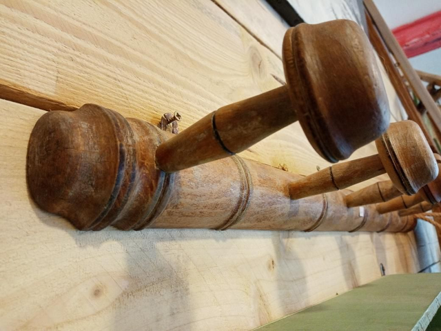 Ancien porte manteau rénové et personnalisé à l'Atelier D'EL, une corde a été ajouté en dernier recours, upcycling, pièce unique.